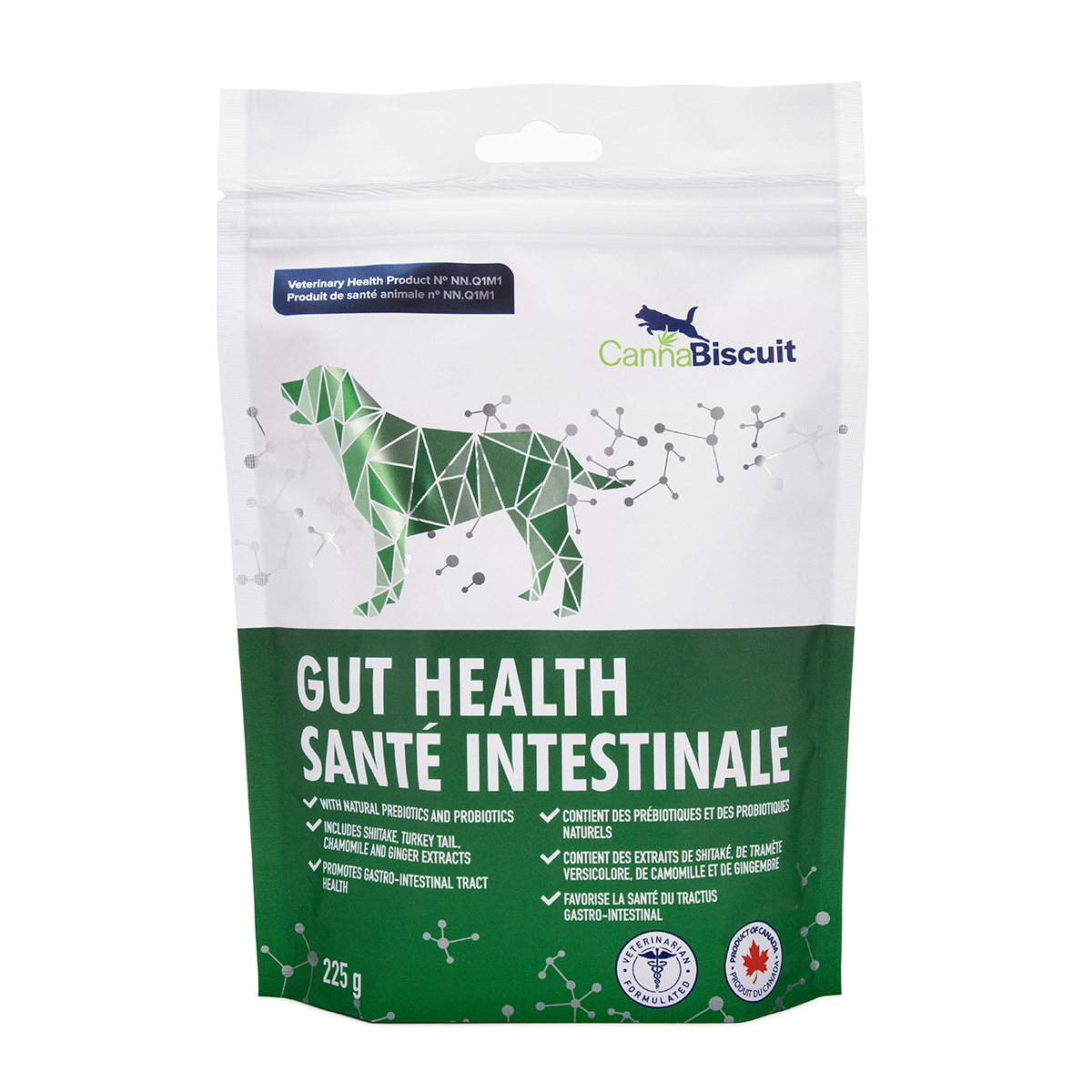 Promotes improved gastro-intestinal tract health and the rejuvenation of microbiota in the gut. With prebiotics and innovative probiotics to support improved immune function, nutrient absorption, metabolism and to assist with inhibiting common food-borne pathogenic bacteria. Includes: shiitake, turkey tail, chamomile and ginger extracts recognized for their immuno-stimulating and gastro-protective properties. ACTIVE INGREDIENTS (per 2.3g soft chew) Shiitake (Lentinula edodes) Extract 17.5mg Turkey Tail (Trametes versicolor) Extract 27.5mg Chamomile Flower (Matricaria chamomilla) Extract 12.5mg DHA (docosahexaenoic acid) 10.5mg Ginger (Zingiber officinale) Extract 1.5mg GanedenBC30 (Bacillus coagulans) >100M CFUs